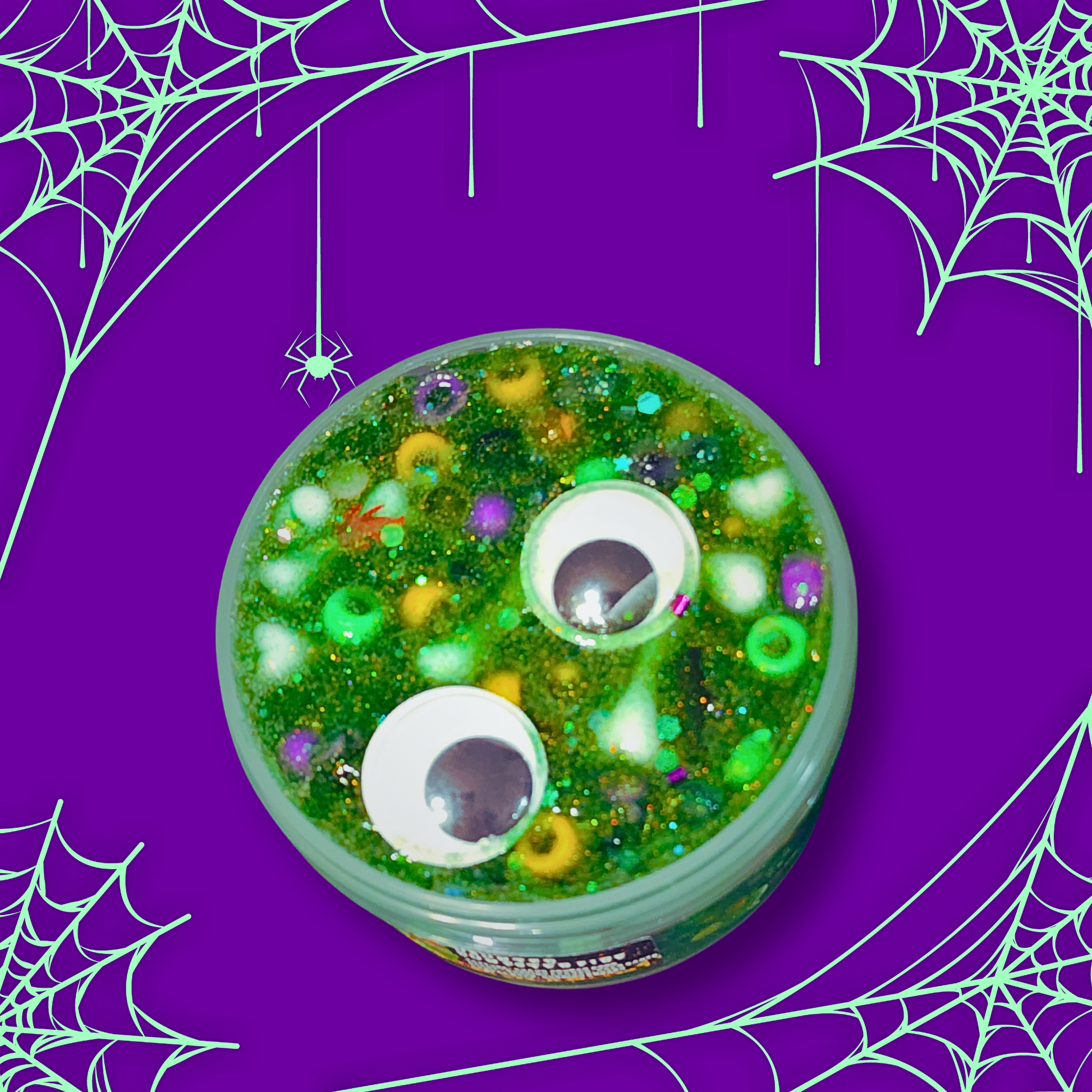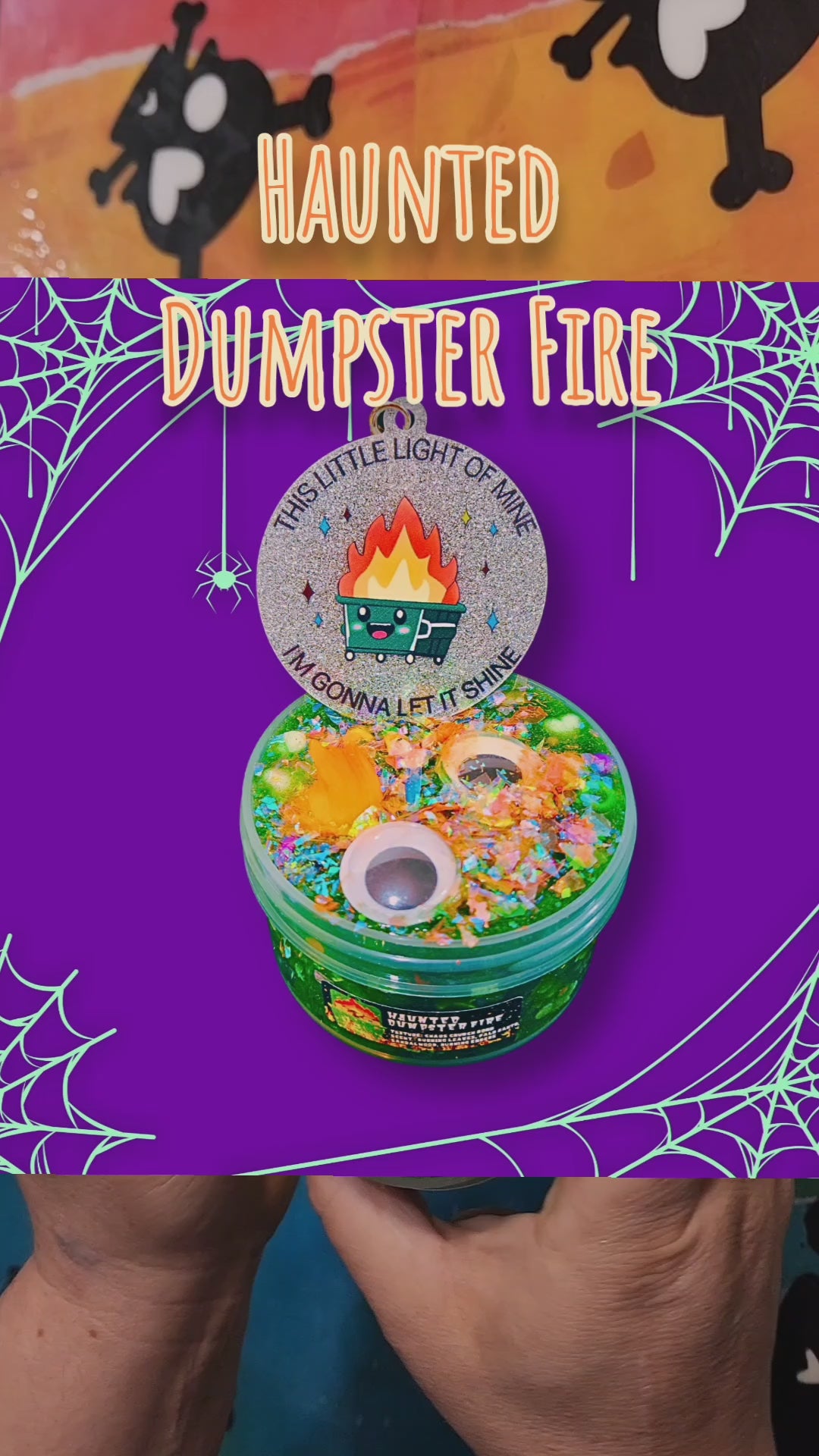Let’s be honest... we’ve all had a “Haunted Dumpster Fire” kind of week. You know, when everything’s technically fine… but also on fire.🔥 This slime is the ultimate tribute to chaos. A green, subtle color-shifting crunchy base packed with sparkly “trash treasures,” beads, bones, fiery flakes, and glitter that looks like embers glowing in the dark. Every stretch and crunch releases waves of burning embers, smoky sandalwood, oud, barn wood, nag champa incense, patchouli, and burning leaves — like the aftermath of a spell gone deliciously wrong.