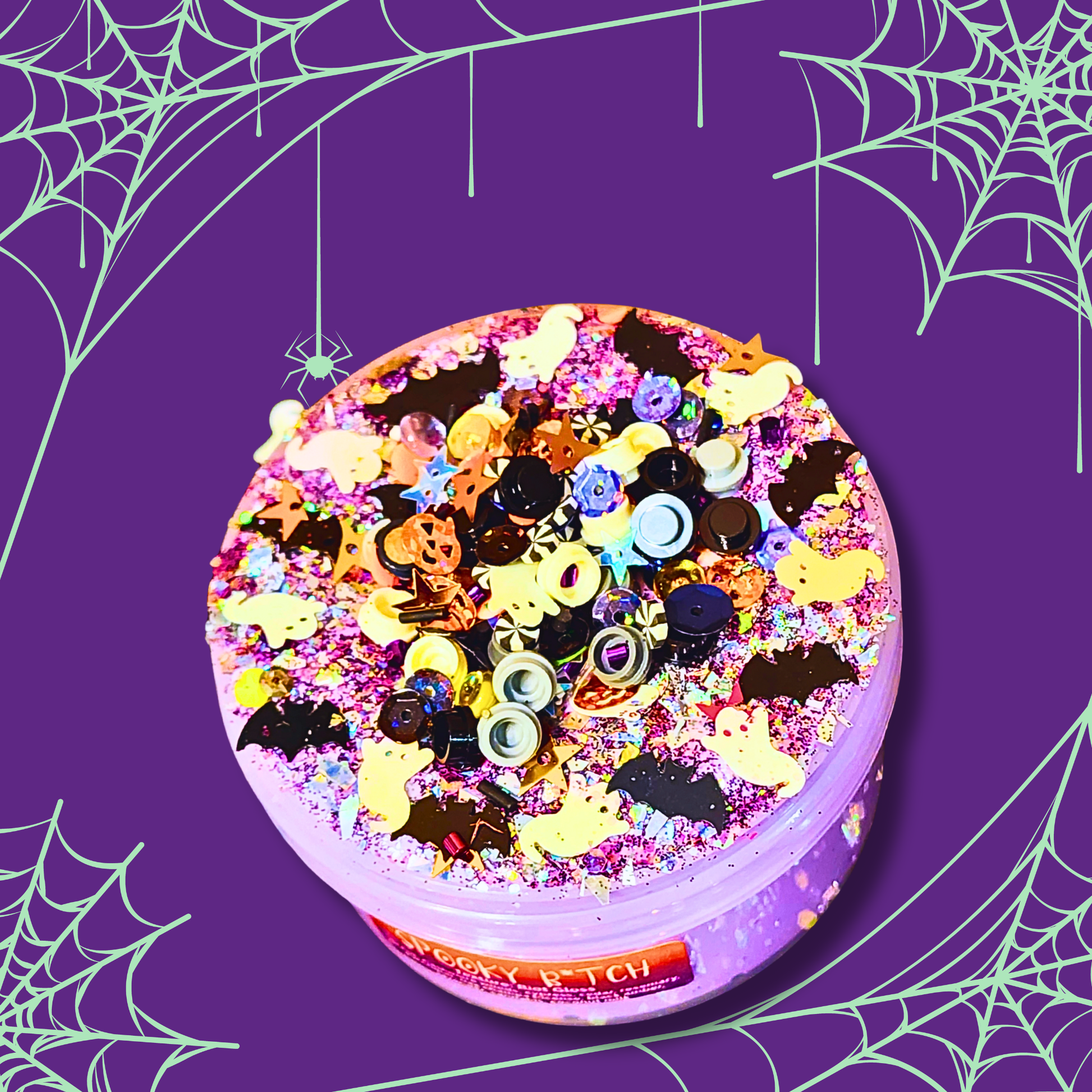 Spooky B*tch Slime 6oz – Thick Glossy Slime for Adults | Patchouli & Cedar Scented | Halloween Slime with Glitter & Fimos