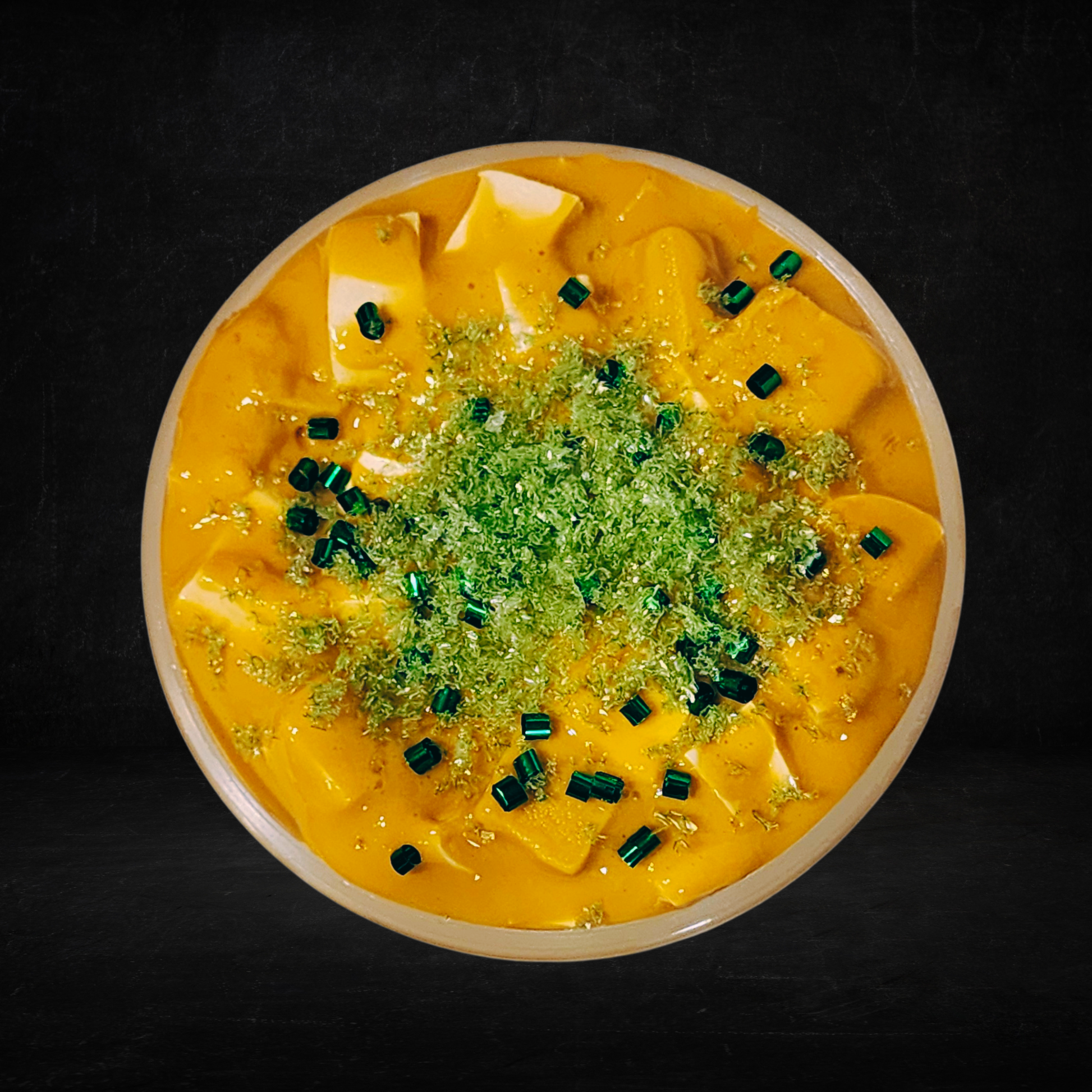 Texture: Cheesecake + Korean jelly cubes + java chips