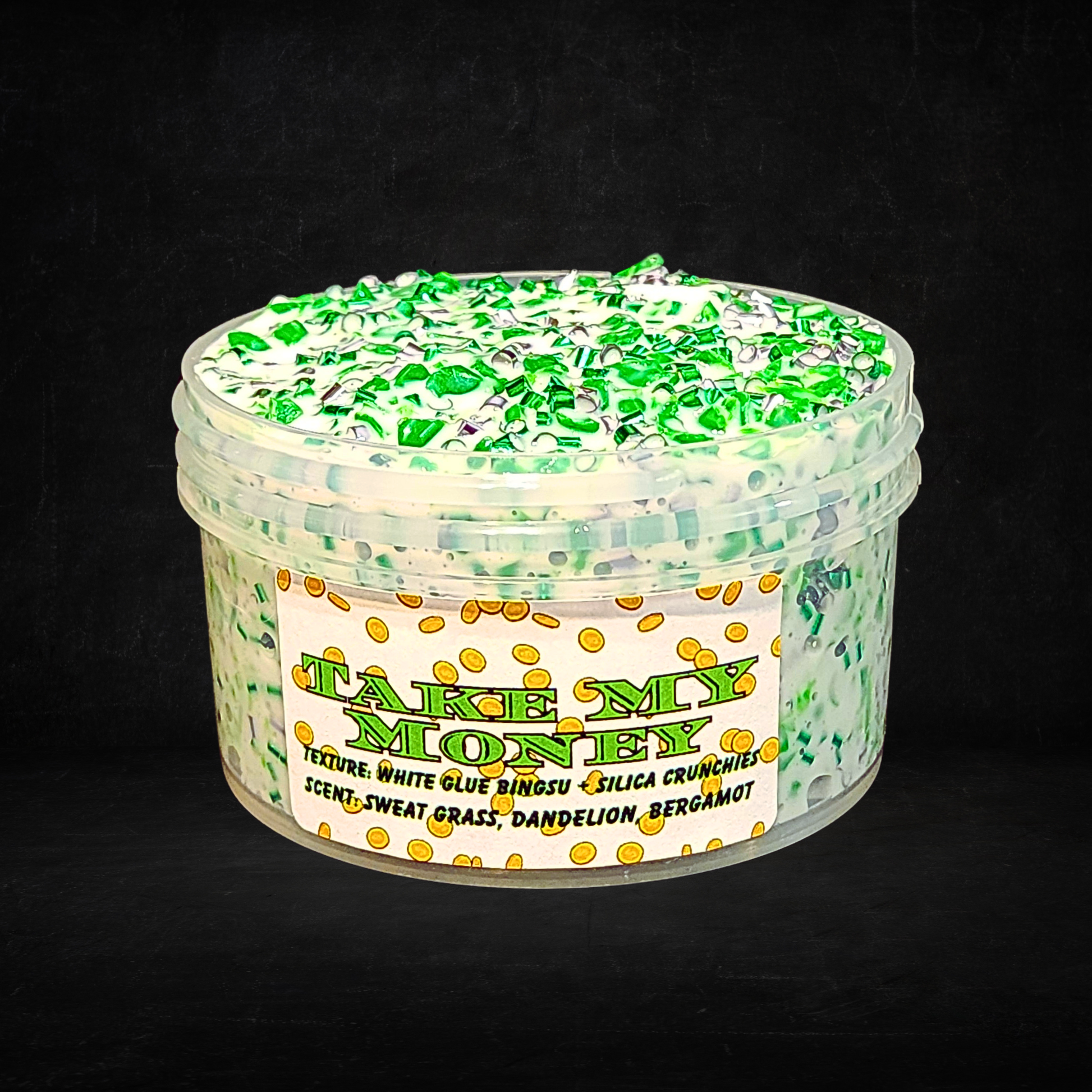 Take My Money – Bingsu Silica Crunch Slime (6oz) | Thick Jiggly Base | Green Crunch | Sweet Grass & Bergamot Scent